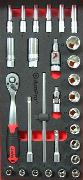 Приобрести T45327 Набор головок и аксессуаров 3/8", 28пр. в мягком ложементе от компании AmPro (Тайвань) из раздела Ложементы мягкие (VA серия)