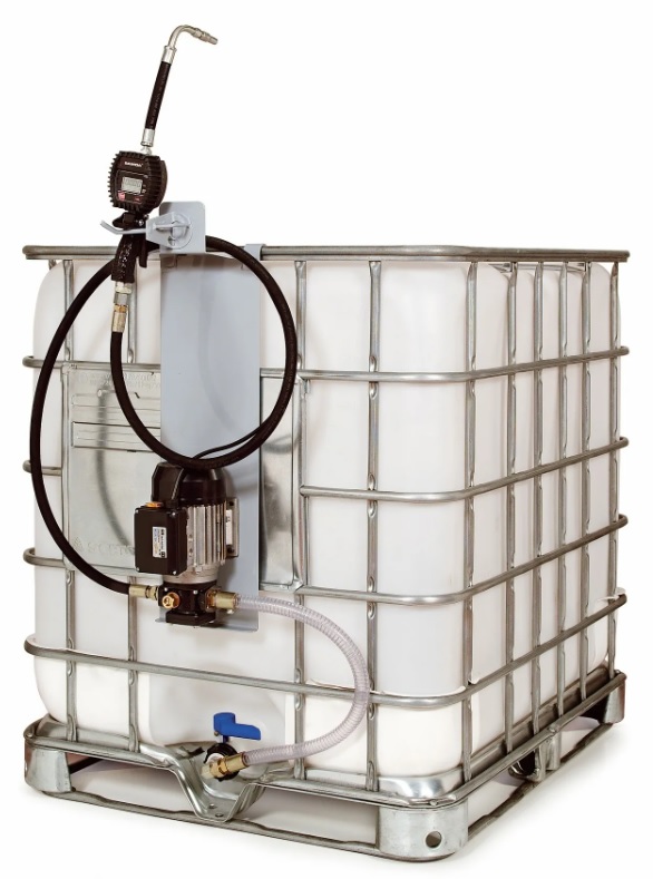 Комплект для раздачи масла (маслораздаточная установка) из емкости 1000л с электрическим насосом и пистолетом с электронным расходомером.
