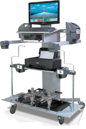 Компьютерный, 4 инфракрасных (ССD) датчика в 2-х передних измерительных головках. Два задних беспроводных инфракрасных отражателя с захватами за шину.