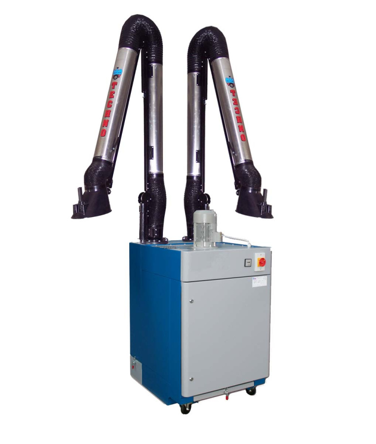 Мобильная установка для фильтрации и вытяжки дыма при пайке, сварке сталей и алюминия, а также мелкой и крупной пыли (при шлифовании сталей). Для интенсивного использования.