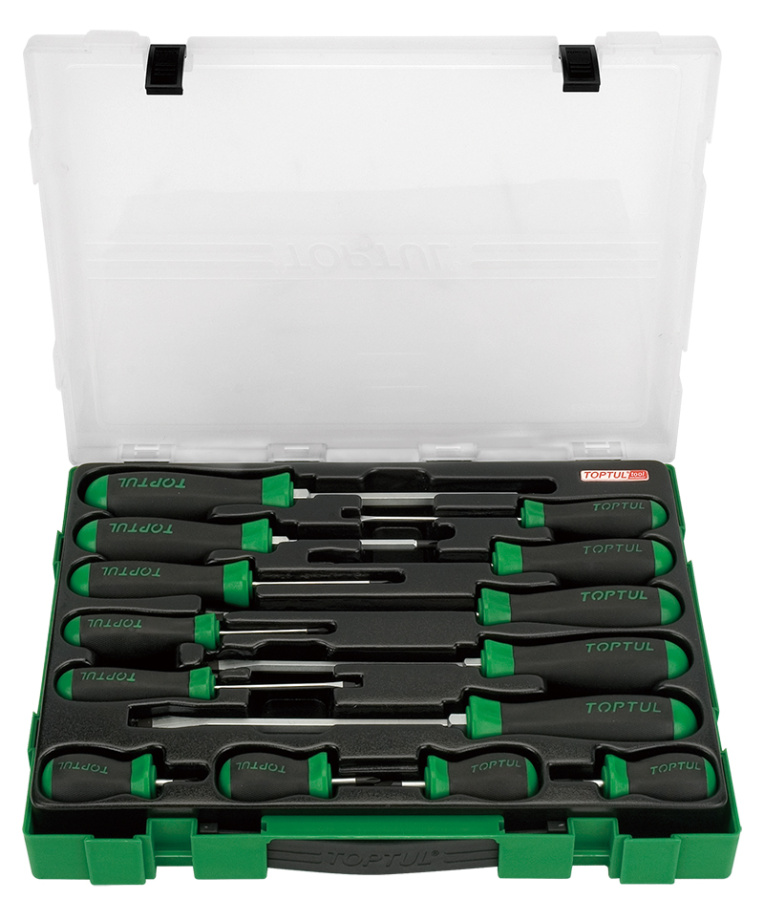 Приобрести Набор отверток (крест и шлиц) серии Pro, 14 предметов в кейсе TOPTUL от компании Toptul (Тайвань) из раздела Наборы отверток по цене 6 154 рублей.