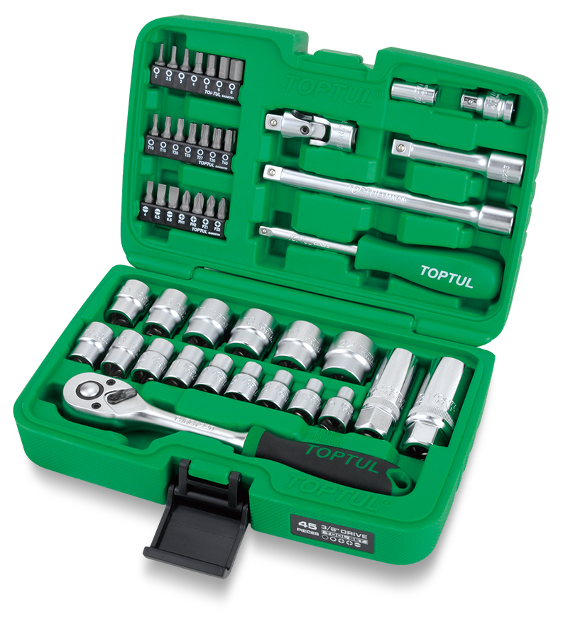 Набор головок и аксессуаров 3/8" 6-гранных 6-22 мм, 45 предметов TOPTUL GCAI4501 купить в Астрахане и других городах России
