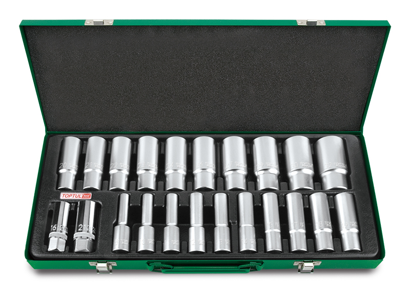Набор головок удлиненных 1/2" 6-гранных 8-32 мм, 22 предмета в метал. ящике TOPTUL купить в Астрахане и других городах России