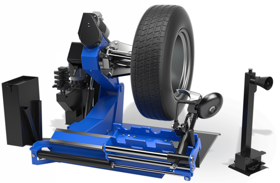 Универсальный электрогидравлический шиномонтажный стенд для монтажа и демонтажа шин грузовых автомобилей и автобусов.